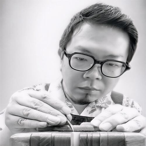 オランダ・アフリカ産水牛角の中でも、特に透明感が高く美しい“純白芯持ち”だけを厳選し、印章彫刻士・浦 良一が一本一本、手彫りで仕上げる特別な一本です。